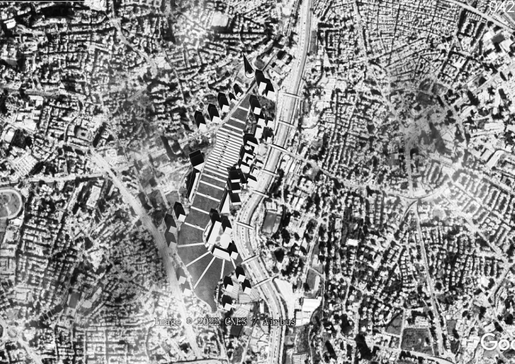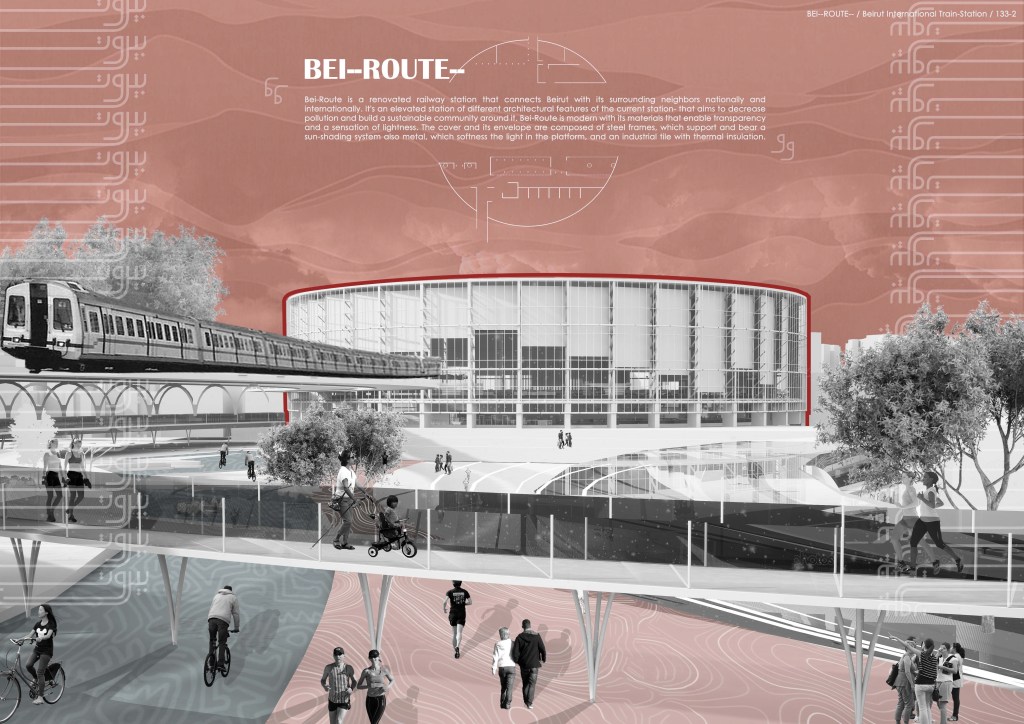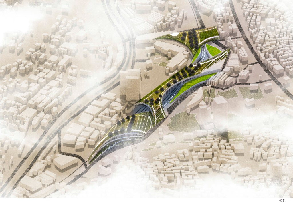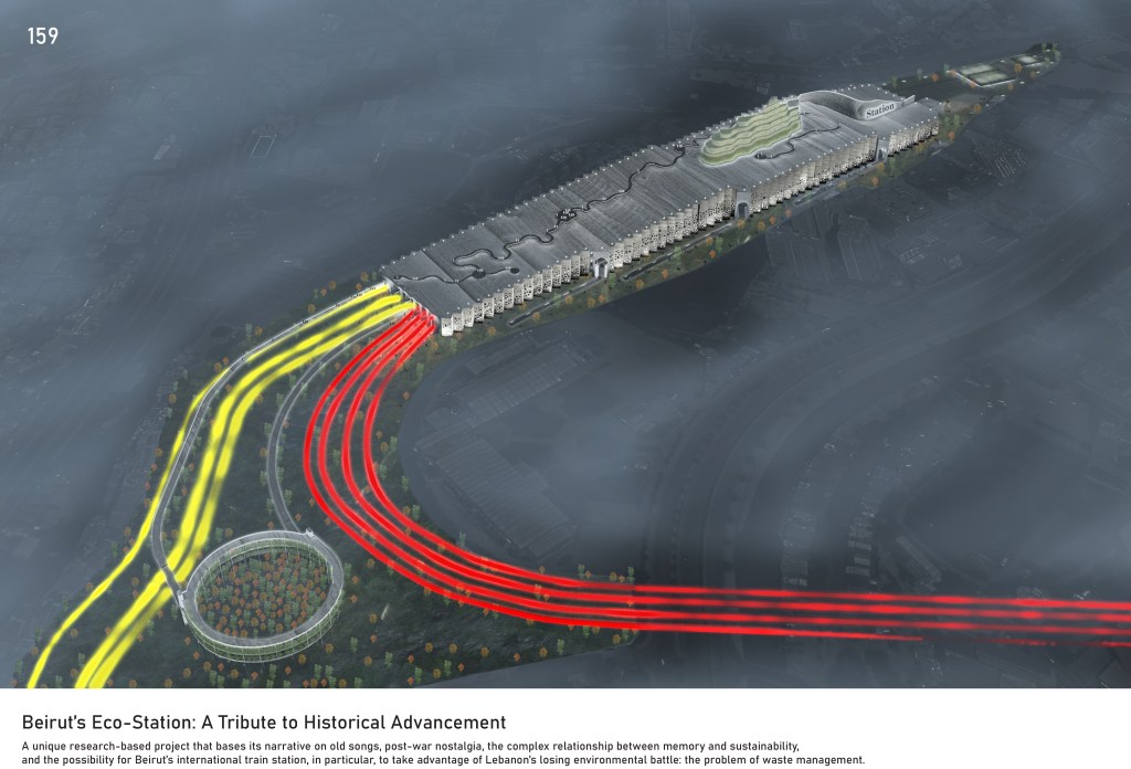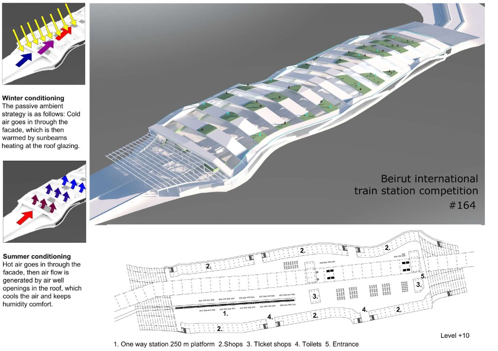 Jury’s Comment: The proposal is based on a daring new concept, that was not developed enough. Similarly, the landscape integration, which could have been of utmost interest should have been explored much further. The excavation cost and impact on the environment would be quite significant and raised the question of whether the Beirut railway system would be underground.